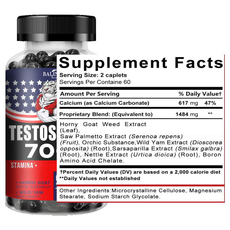 Testosteron-Ergänzungsmittel - mit Kalzium, Brennnessel & Sägepalme - Unterstützt Regulierte Energieniveaus - 120 Kapseln